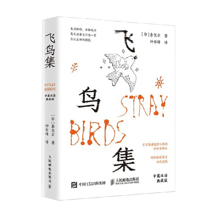 書名:《飛鳥集》 定價:58.8元 作者:泰戈爾著 ISBN:9787115670335 出版社:人民郵電出版社 內(nèi)容簡介: 《飛鳥集》是中國人最喜歡的泰戈爾詩集,共有325首小詩,浪漫與哲理并存。以極其平常的花花草草、山山水水、晨曦黃昏、星辰大海、飛禽走獸、愛恨情仇、生離死別等為素材,充盈著清新雋永的詩情畫意,散發(fā)著彌足珍貴的人間真情,洋溢著耐人尋味的深刻哲理。閱讀《飛鳥集》,欣賞詩人充滿神韻的優(yōu)美文筆,嘆服詩人如大海一樣無垠的寬廣胸襟,擁抱詩人像宇宙一樣深邃的人文關(guān)懷,汲取詩人洞察人世的金色智慧,追隨詩人天人合一的自我修煉,可以拋卻喧囂浮躁塵世的一切煩憂。