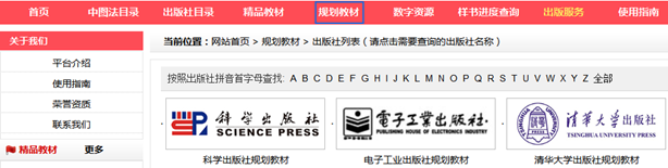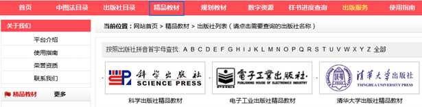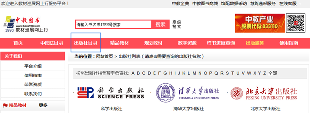 方式二 點(diǎn)擊出版社目錄,根據(jù)出版社查找。如下圖: