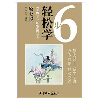 《灰喜鵲玉蘭 紅嘴藍(lán)鵲辛夷(原大版)/6步輕松學(xué)》提供了兩幅花鳥的橫幅畫稿,每幅作品構(gòu)圖完整,設(shè)色典雅,每張作品分為六步細(xì)致的講解,首先一幅是灰喜鵲玉蘭、紅嘴藍(lán)鵲辛夷線描稿原大圖,可以直接把熟宣紙或絹鋪在上面過稿,第二到第六步設(shè)色步驟,讀者可以參照步驟來作畫。喜鵲和玉蘭都有很好的吉祥寓意,有群眾基礎(chǔ)。