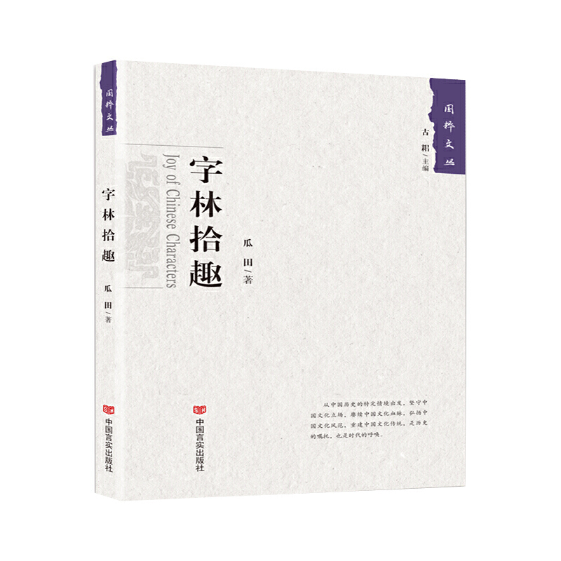 據(jù)考察,從甲骨文出現(xiàn)至今,中國文字的歷史已有3600多年。文字所承載的文化精髓,不僅體現(xiàn)在它所記錄下的歷史事件,它的出現(xiàn)與發(fā)展本身就是中華民族傳統(tǒng)文化源遠(yuǎn)流長的*好見證。瓜田鐘情于漢字研究,咬文嚼字是其興趣所在,也是志業(yè)所求。《字林拾趣》分為門外字談字里乾坤語文小札譯事雜說四個部分,共六十余篇文章,在這些文章中,我們可以學(xué)習(xí)語言文字的知識,體味咬文嚼字的樂趣,書中的許多篇目如《當(dāng)漢字遇上電腦》《門外漢眼中的甲骨文》《可吸入顆粒物到底可吸不可吸》《你好和漢語中的問候語》《媳婦和老婆是不是一回事》等,讀來輕松愉快,又發(fā)人深省。